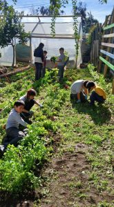 ESTUDIANTES COSECHAN EN EL TALLER DE HUERTO